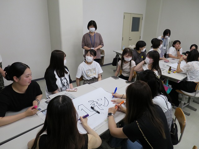 就職して約4ヶ月。職場に慣れてくる反面、不安や葛藤など様々な壁に直面しているようでした。みんなの〝今の気持ち″を持ち寄り、各グループで共有しました。