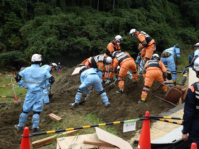 10月25日(土)午前9時に中央構造線断層帯を震源とする大規模地震が発生し、最大震度6強を観測。数日前からの大雨の影響もあり土砂災害等の甚大な被害が発生したという想定で訓練が行われました。