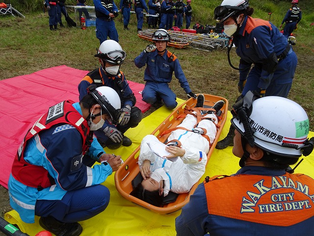 本校は10月26日(日)たかとり健幸の森公園で行われた訓練に参加し、発生から1日以上救助されず、土砂に埋没している家屋や中層階ビルで孤立している要救助者という想定です。