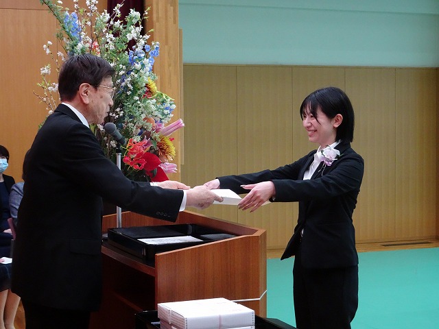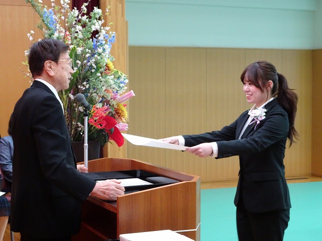 学校長より、卒業証書が一人ずつに手渡されました。学校長の呼びかけに満面の笑みで応える姿がとても印象的でした。